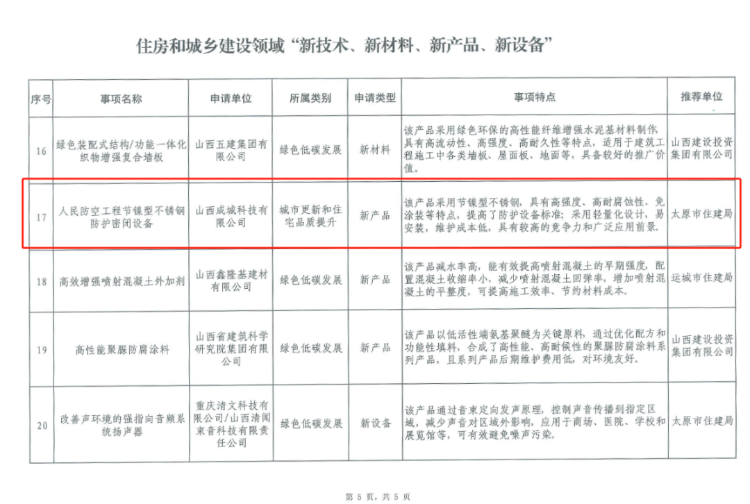 山西成城科技有限公司在山西省住房城乡建设领域推广节镍型不锈钢防护设备新产品,大力推动人防建设绿色低碳、高质量发展,并通过了项目评审!